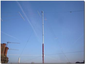 his new antenna system it is a homebrew £30.00! 20/17/15 and 10m fan diapole on the roof of his London flat. I went over to visit today and we worked several Mexican stations and guy in New York. Pretty good hop for a homebrew antenna!